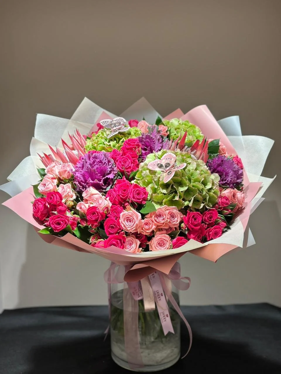 Our flower arrangements are thoughtfully crafted using a mix of unique blooms and complementary plants. Each piece is designed to bring balance, texture, and natural beauty to any space, whether at home or for a special occasion.
